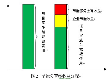 合同能源管理模式包括節(jié)能效益分享型、節(jié)能量保證型、能源費(fèi)用托管型、融資租賃型、混合型等類型的合同。其中節(jié)能效益分項(xiàng)型是推薦合作模式,以充分調(diào)動(dòng)業(yè)主的節(jié)能積極性。所謂“節(jié)能效益分享型”,是指節(jié)能工程的前期投入由節(jié)能服務(wù)公司擔(dān)負(fù),客戶無(wú)需投入資金。在項(xiàng)目完成后,客戶在一定的合同期內(nèi),按比例與公司分享由節(jié)能項(xiàng)目產(chǎn)生的節(jié)能效益。