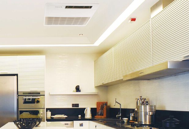 大金金制全效家用中央空調廚房專用空調,專為廚房設計。超薄嵌入式內機不占空間,