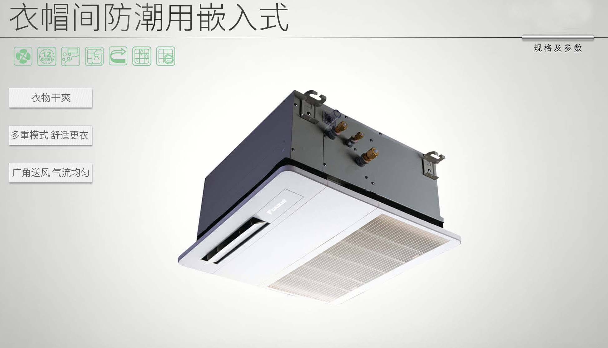 大金衣帽間專用空調智能檢測,濕度過大時自動開啟除濕模式,運用魔力三管技術